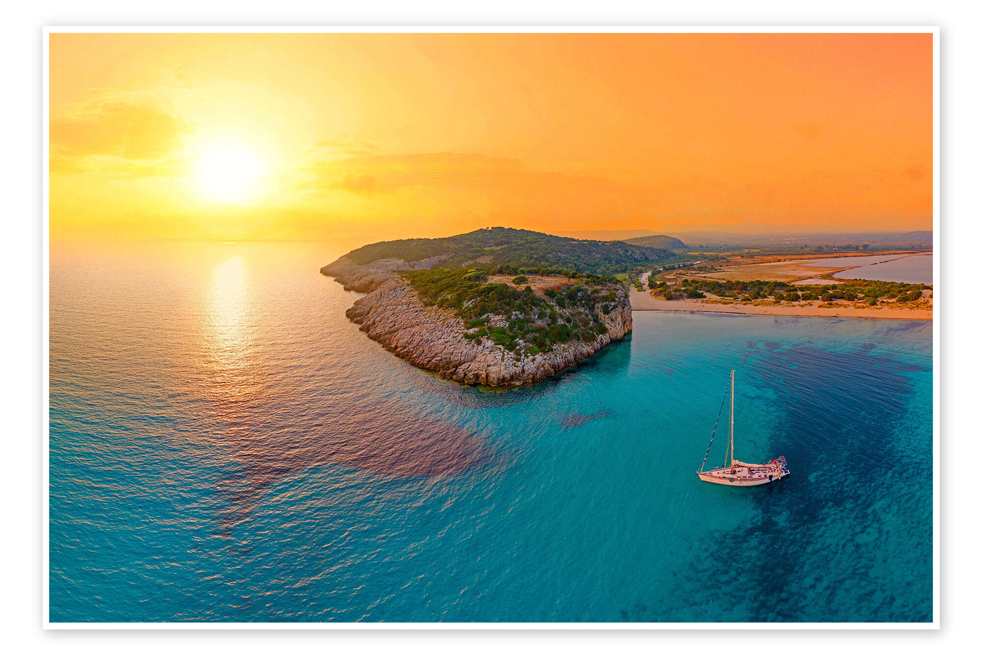 Poster Segelboot bei Sonnenuntergang in Griechenland