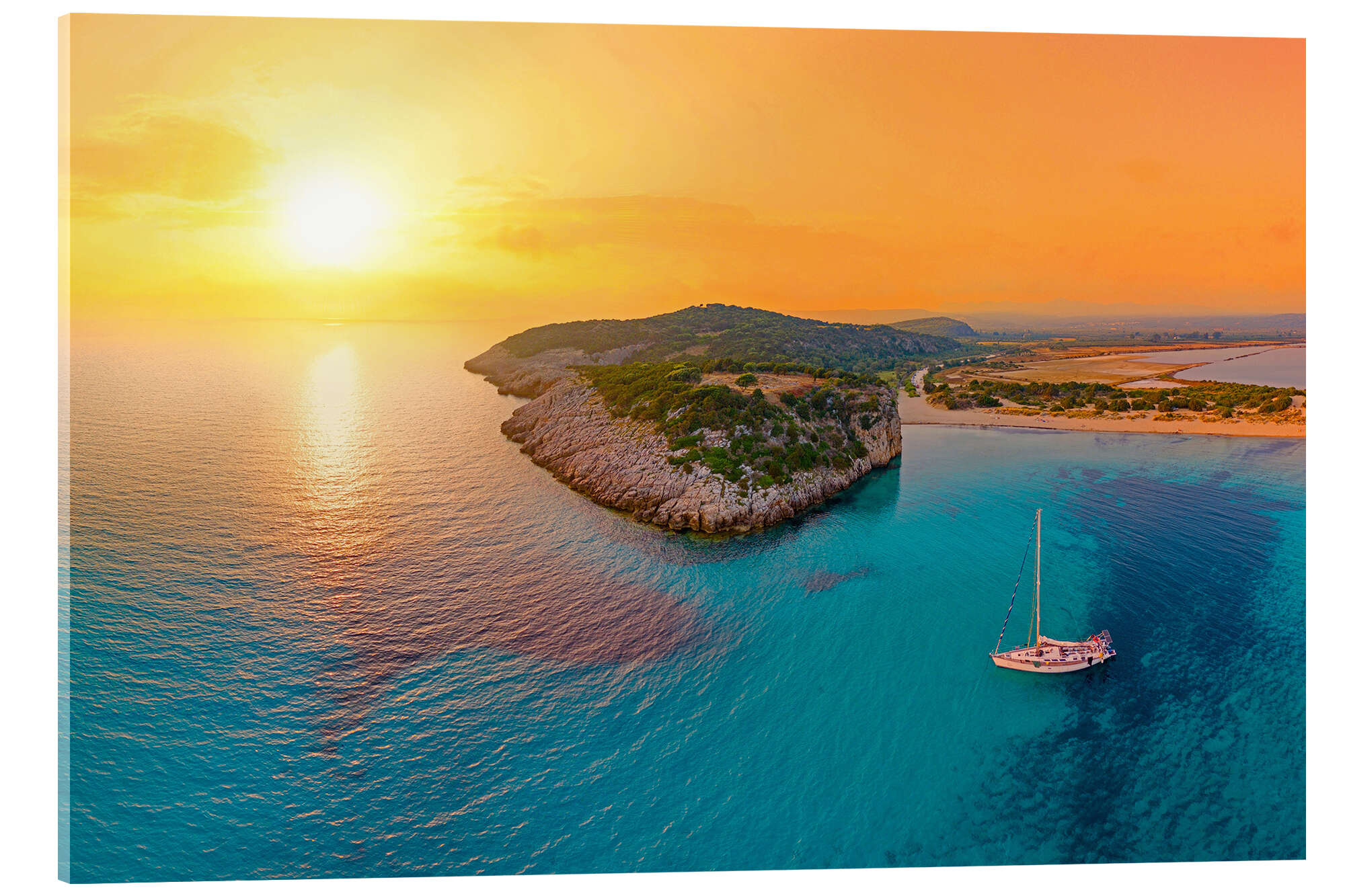 Acrylglasbild Segelboot bei Sonnenuntergang in Griechenland