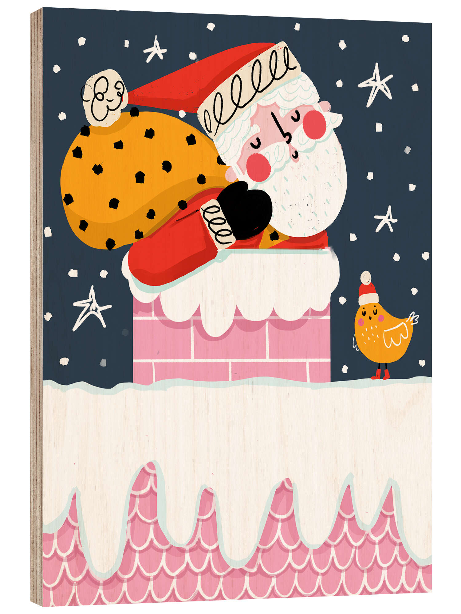 Posterlounge   Wandbilder   Geschenkideen   Weihnachten   Nichola Cowdery   Holzbild Runter durch den Schornstein