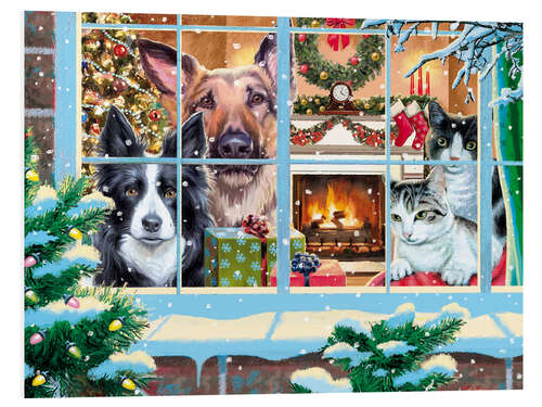 Hartschaumbild Die Haustiere warten auf den Santa Claus