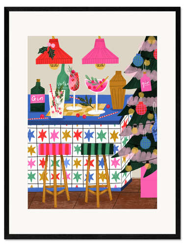 Gerahmter Kunstdruck Weihnachten an der Bar