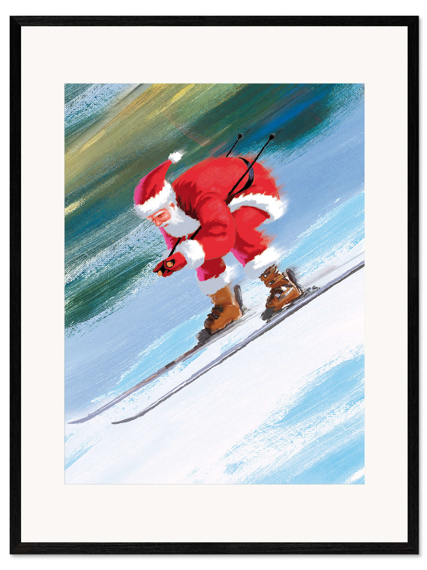 Gerahmter Kunstdruck Santa Skiing