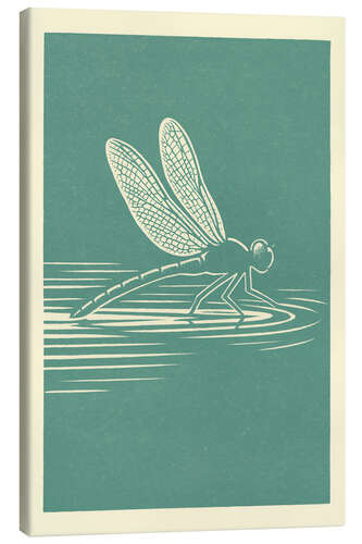 Leinwandbild Libelle, die über Wasser gleitet