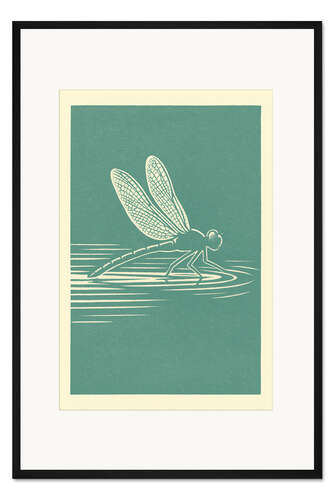 Posterlounge   Wandbilder   Türkis   Gradient Grooves   Gerahmter Kunstdruck Libelle, die über Wasser gleitet