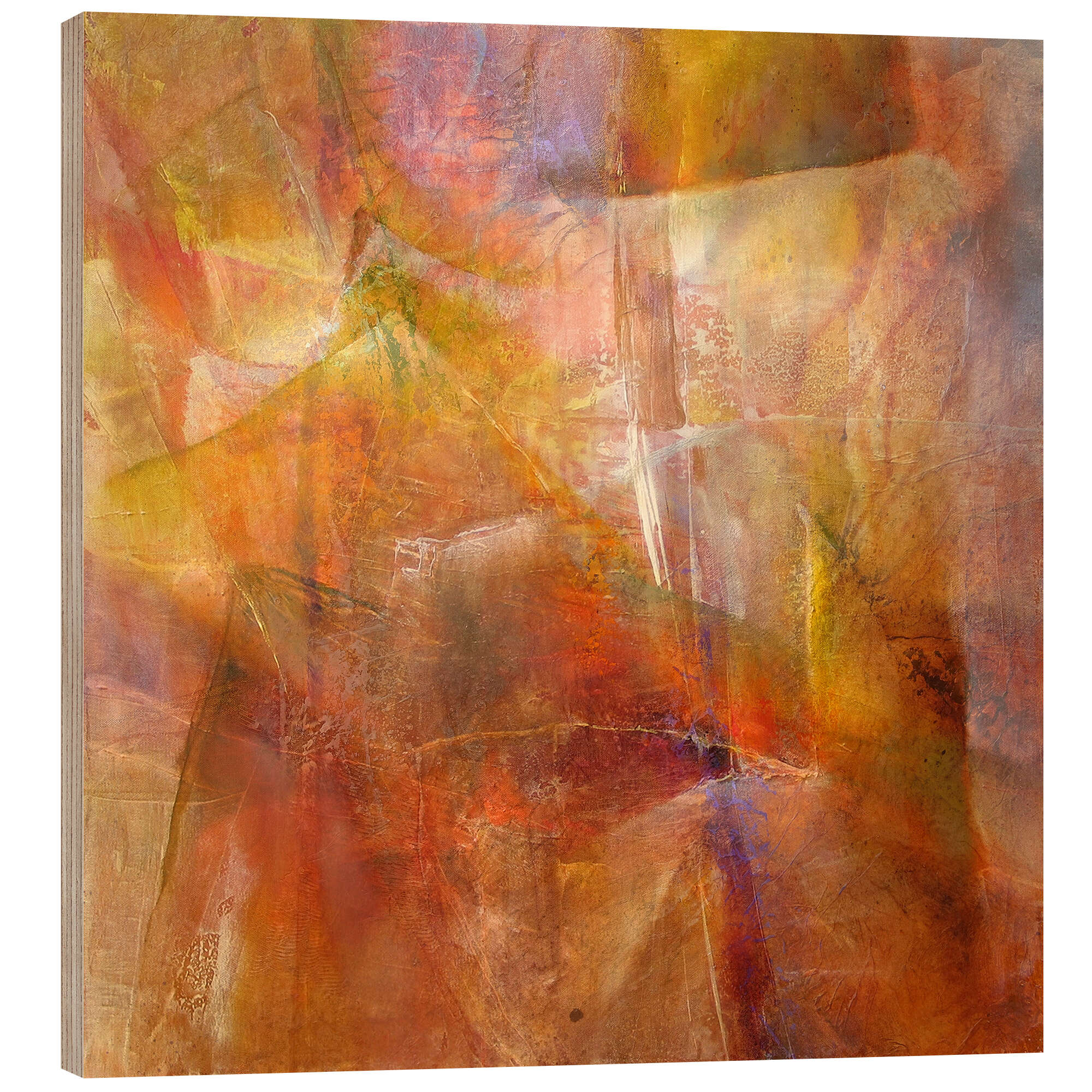 Posterlounge   Wandbilder   Malerei   Abstrakte Kunst   Annette Schmucker   Holzbild Fantasie in Gold und Rot