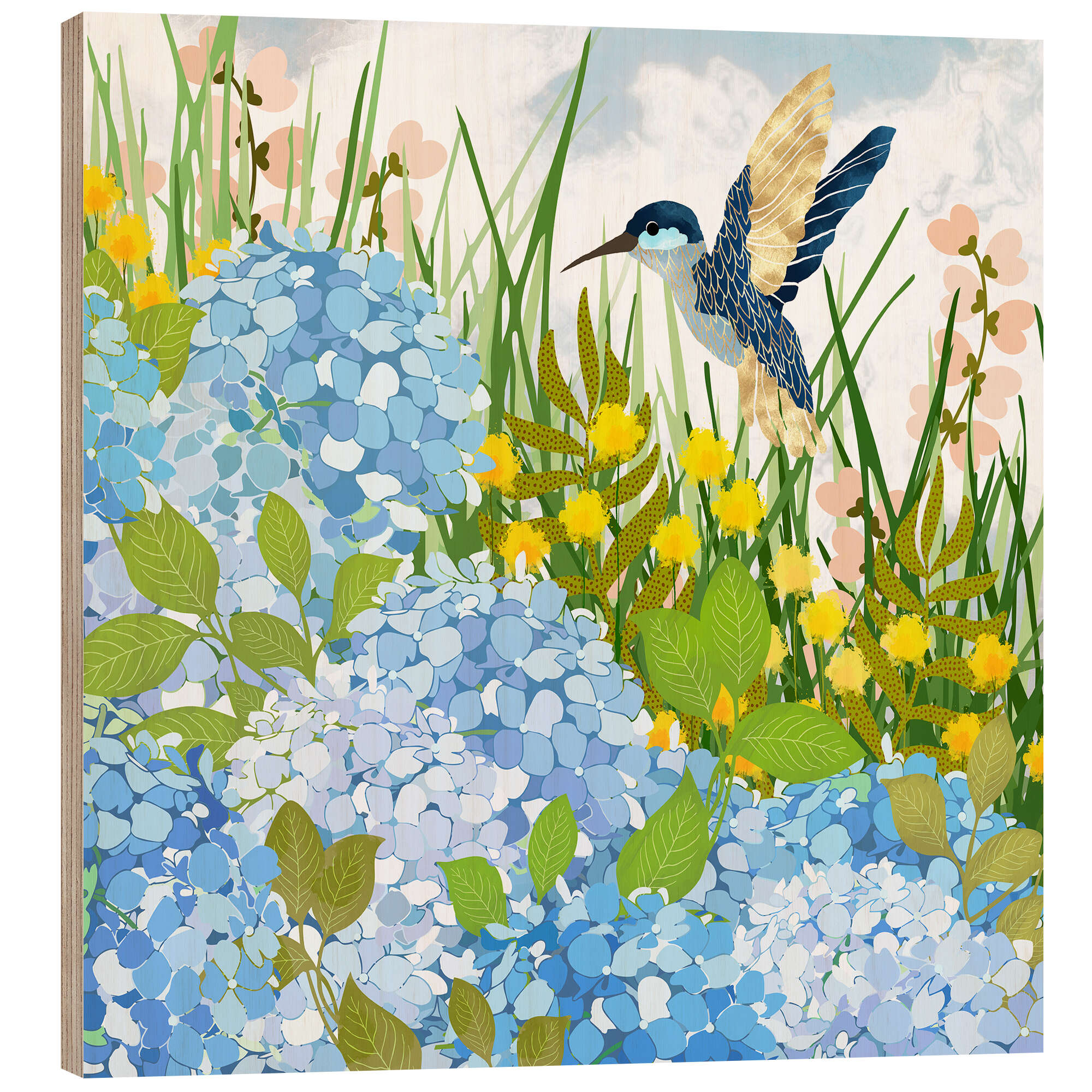 Holzbild Kolibri im Sommergarten