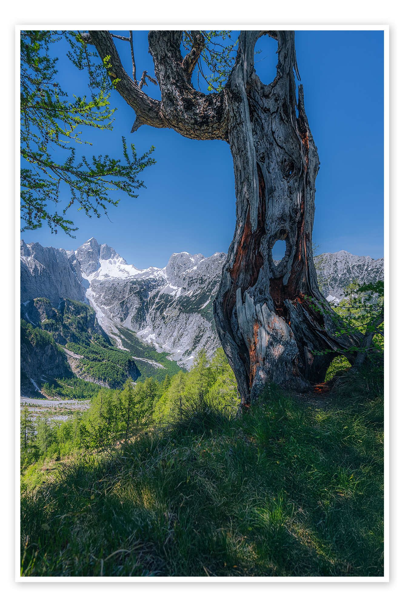 Poster Lärche am Gebirgsrand mit Ausblick auf die Julischen Alpen