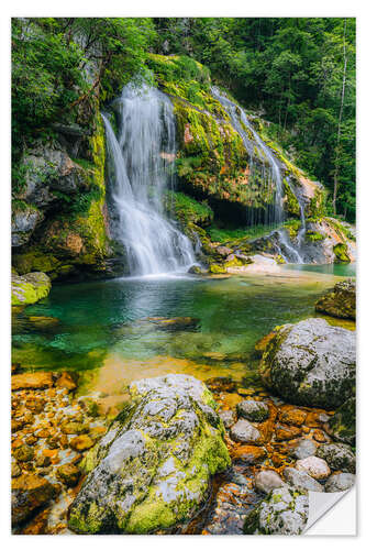 Wandsticker Kristallklarer Wasserfall im grünen Bergidyll