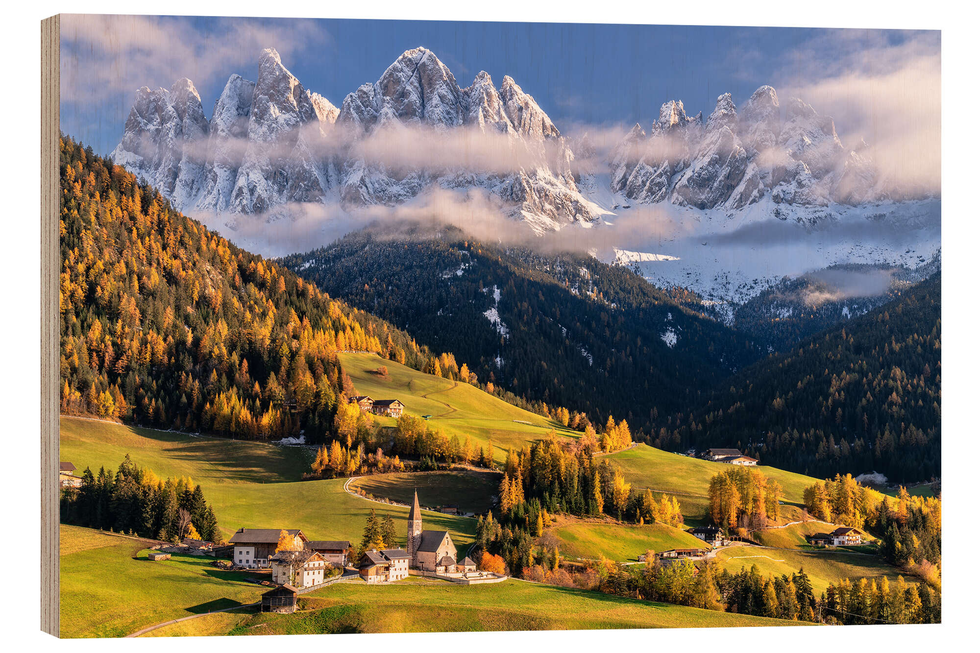 Posterlounge   Wandbilder   Blau   Achim Thomae   Holzbild Herbst im Villnößtal Südtirol