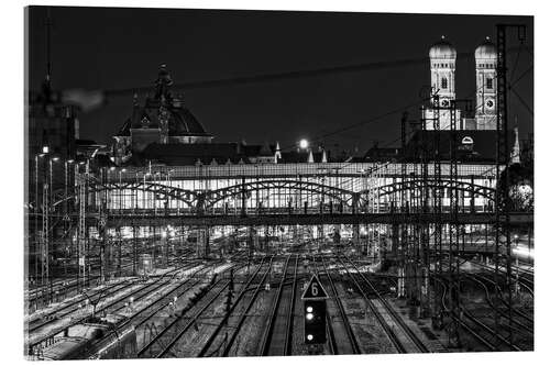 Posterlounge   Wandbilder   Schwarz-Weiß   Achim Thomae   Acrylglasbild Hauptbahnhof München und Frauenkirche