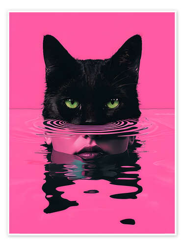 Poster Katzenfrau in rosa Wasser