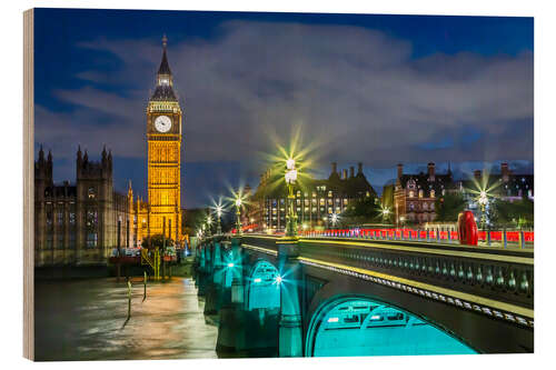 Holzbild Big Ben und die Westminster Bridge bei Nacht