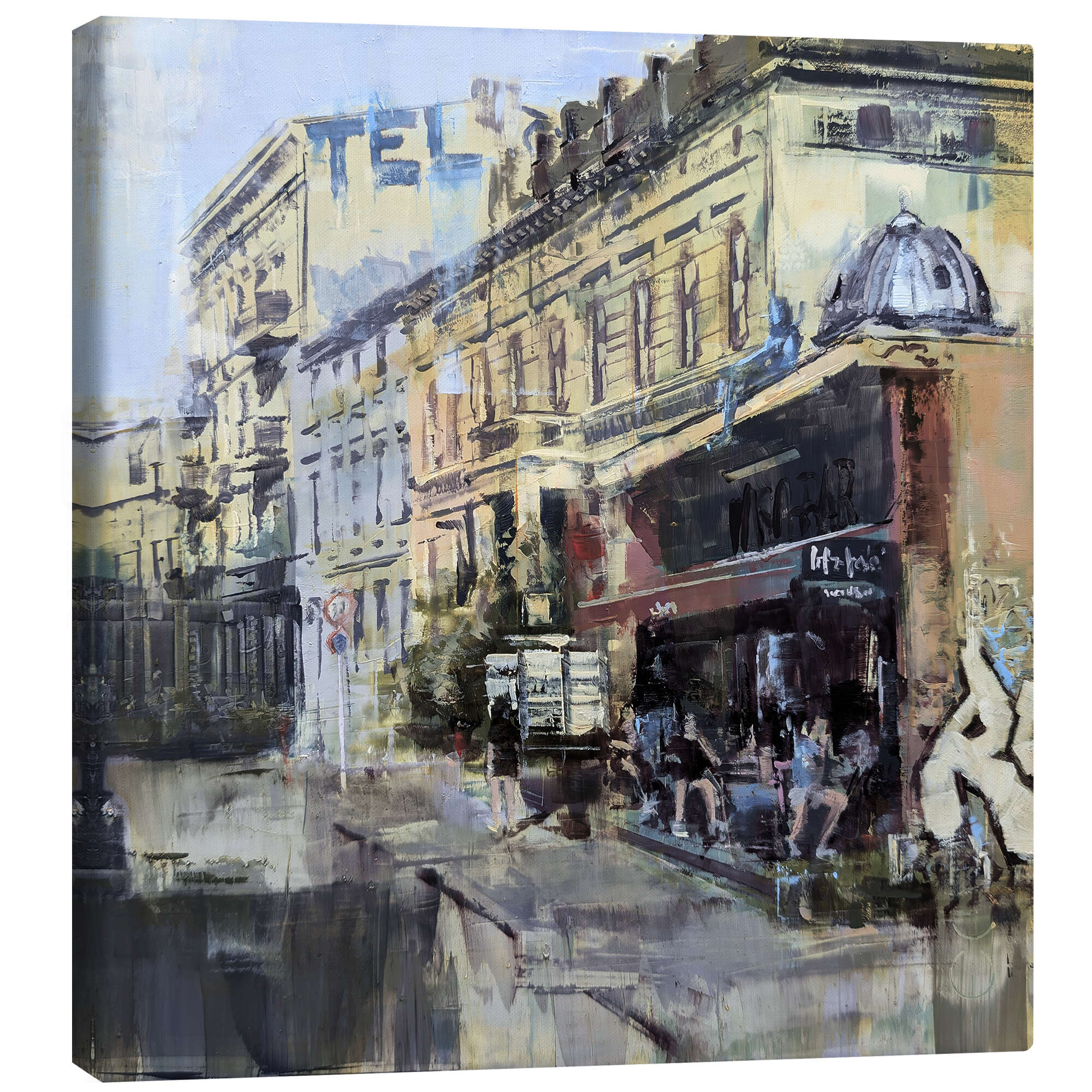 Posterlounge   Wandbilder   Malerei   Eduard Warkentin   Leinwandbild Belebte Straßenszene Bar in Potsdam