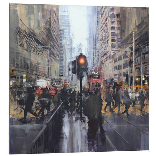 Alubild Straßenszene vor einer Tramhaltestelle in Hong Kong
