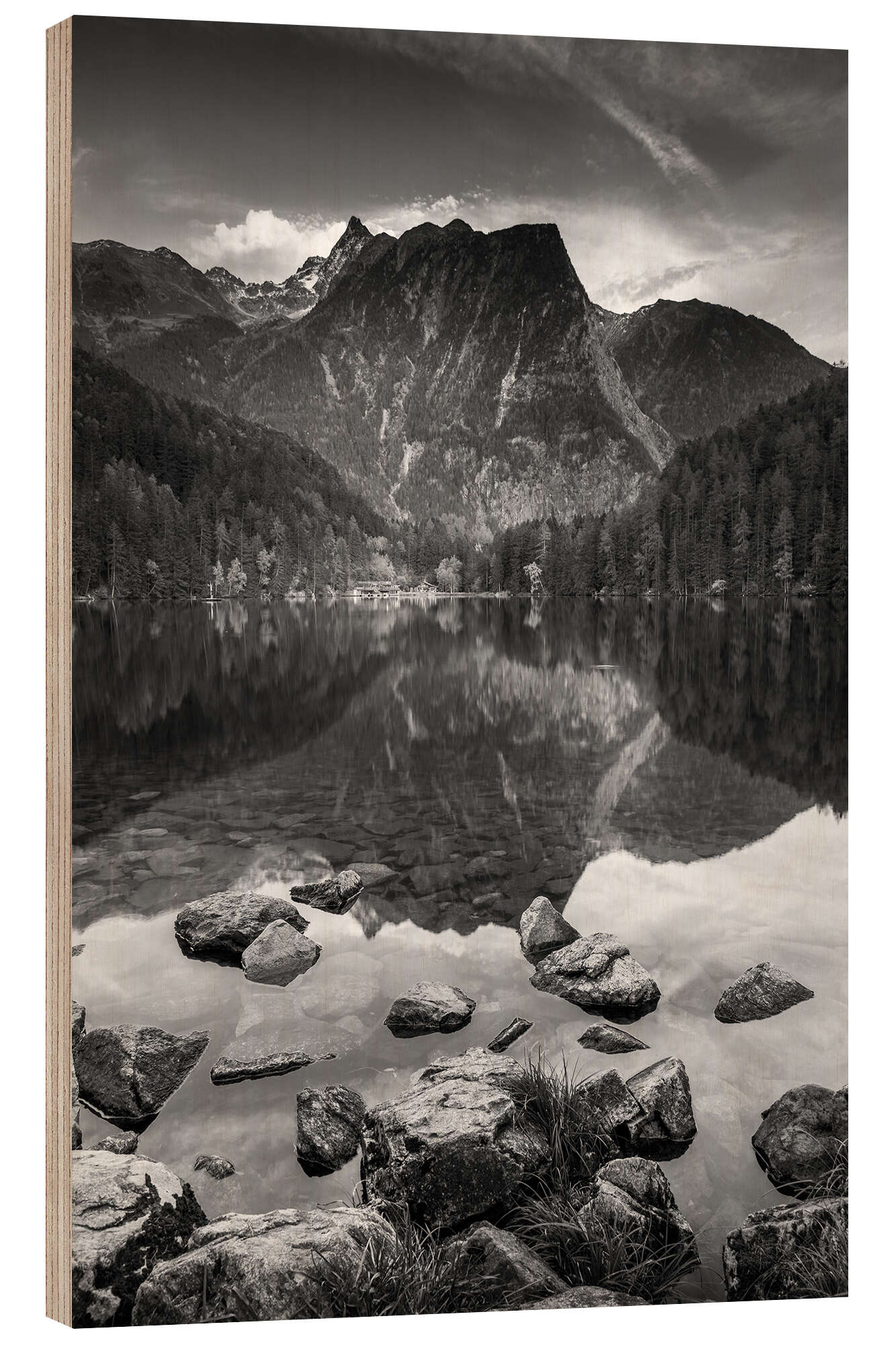 Posterlounge   Wandbilder   Schwarz-Weiß   Christian Müringer   Holzbild Piburger See im Ötztal in Tirol