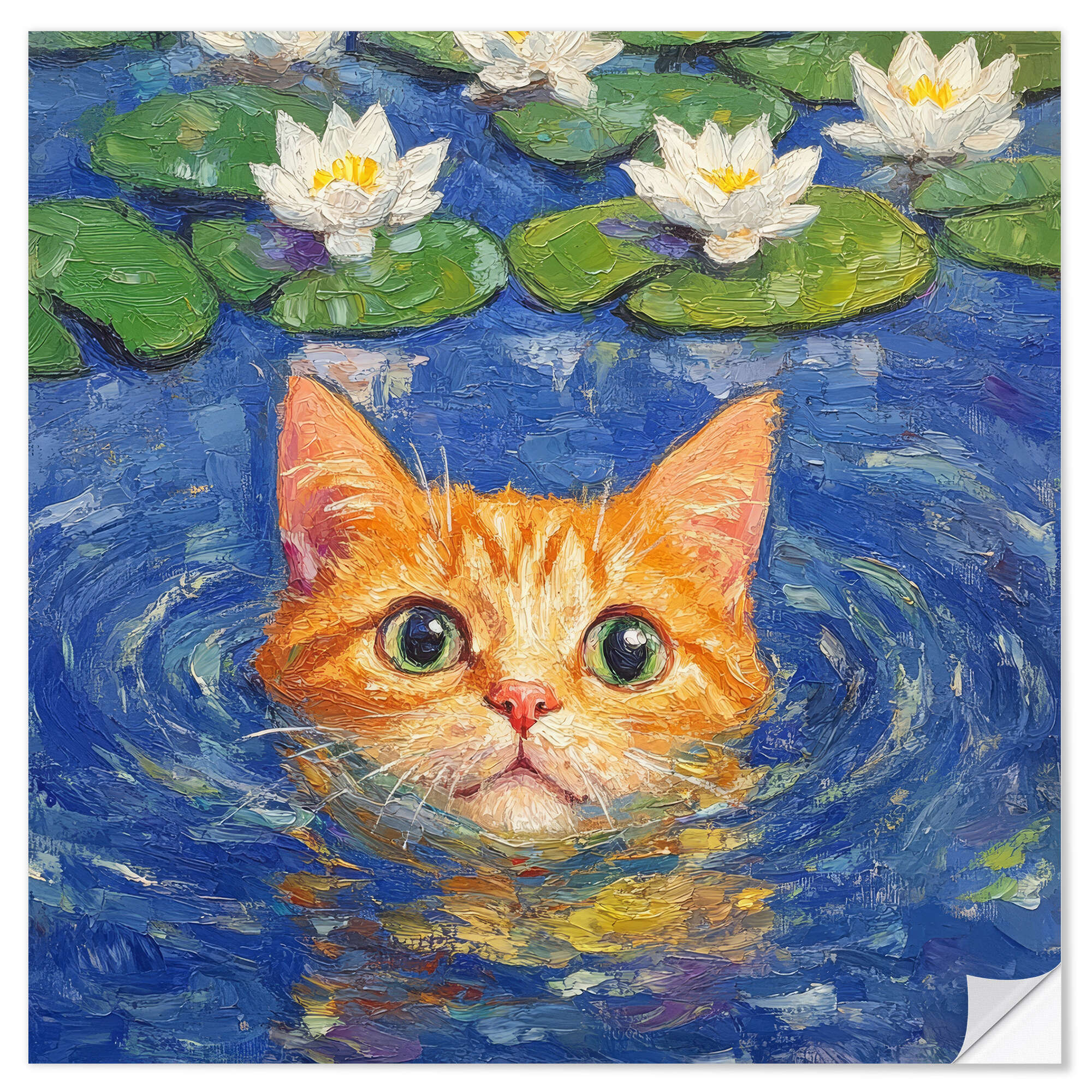 Posterlounge   Wandbilder   Blau   DejaReve   Wandsticker Schwimmende orangefarbene Katze