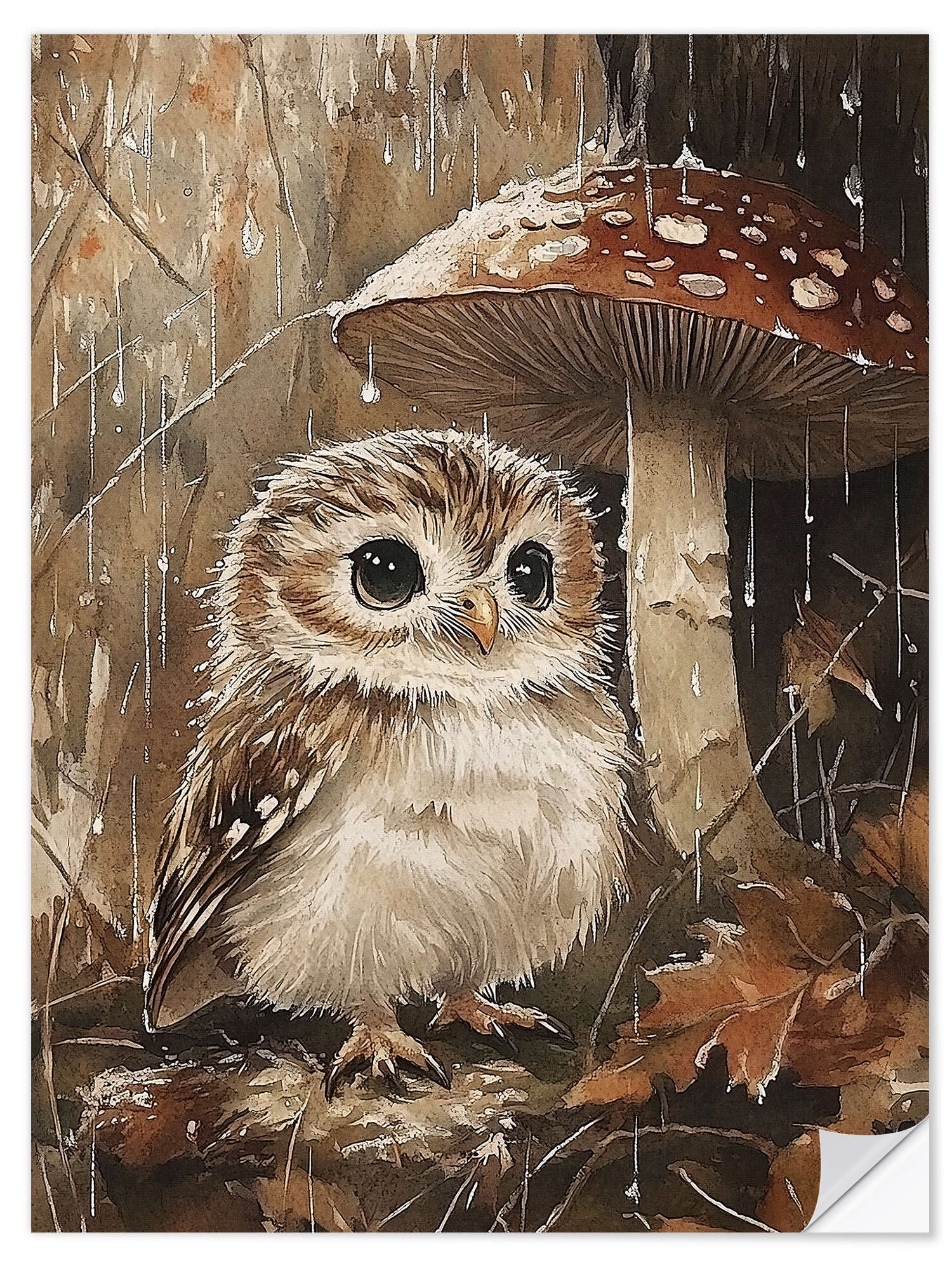 Wandsticker Kleine Eule unter einem Pilz