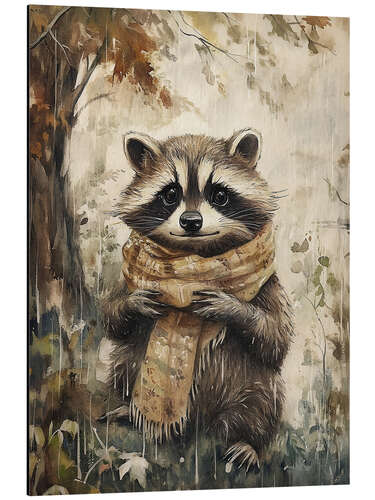 Alubild Waschbär im Schal