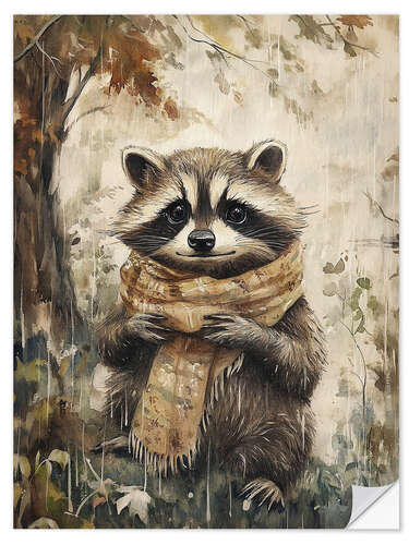 Wandsticker Waschbär im Schal