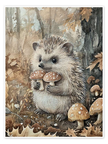 Posterlounge   Wandbilder   Kinderzimmer   Olga Telnova   Poster Igel mit Pilzen