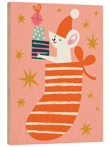Holzbild Niedliche Maus mit Geschenken