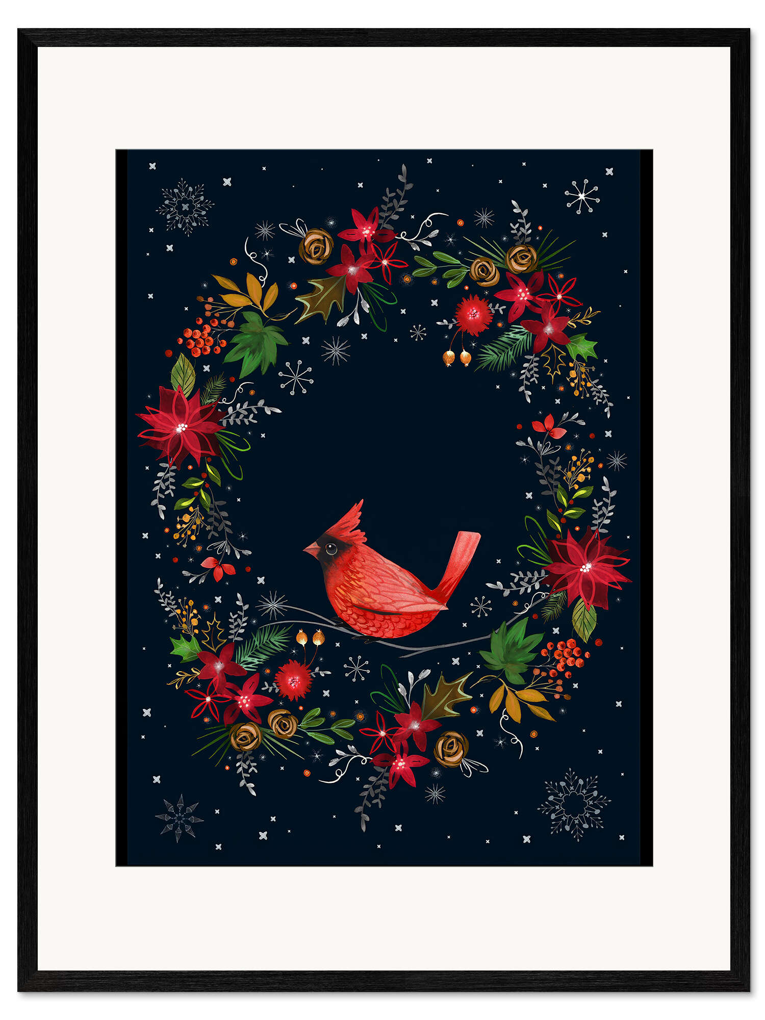 Gerahmter Kunstdruck Weihnachts-Rotkardinal