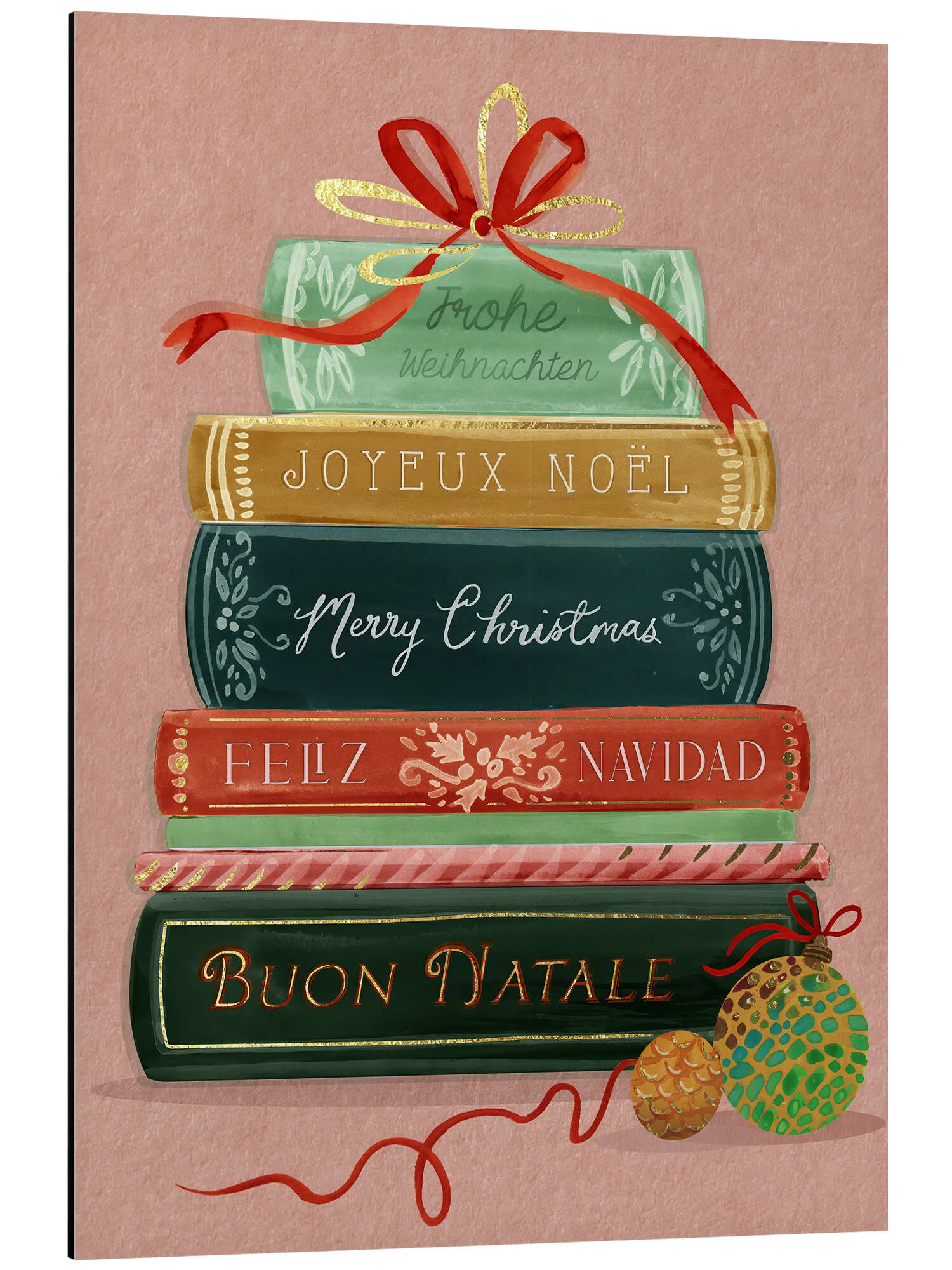 Alubild Frohe Weihnachten mit internationalen Büchern