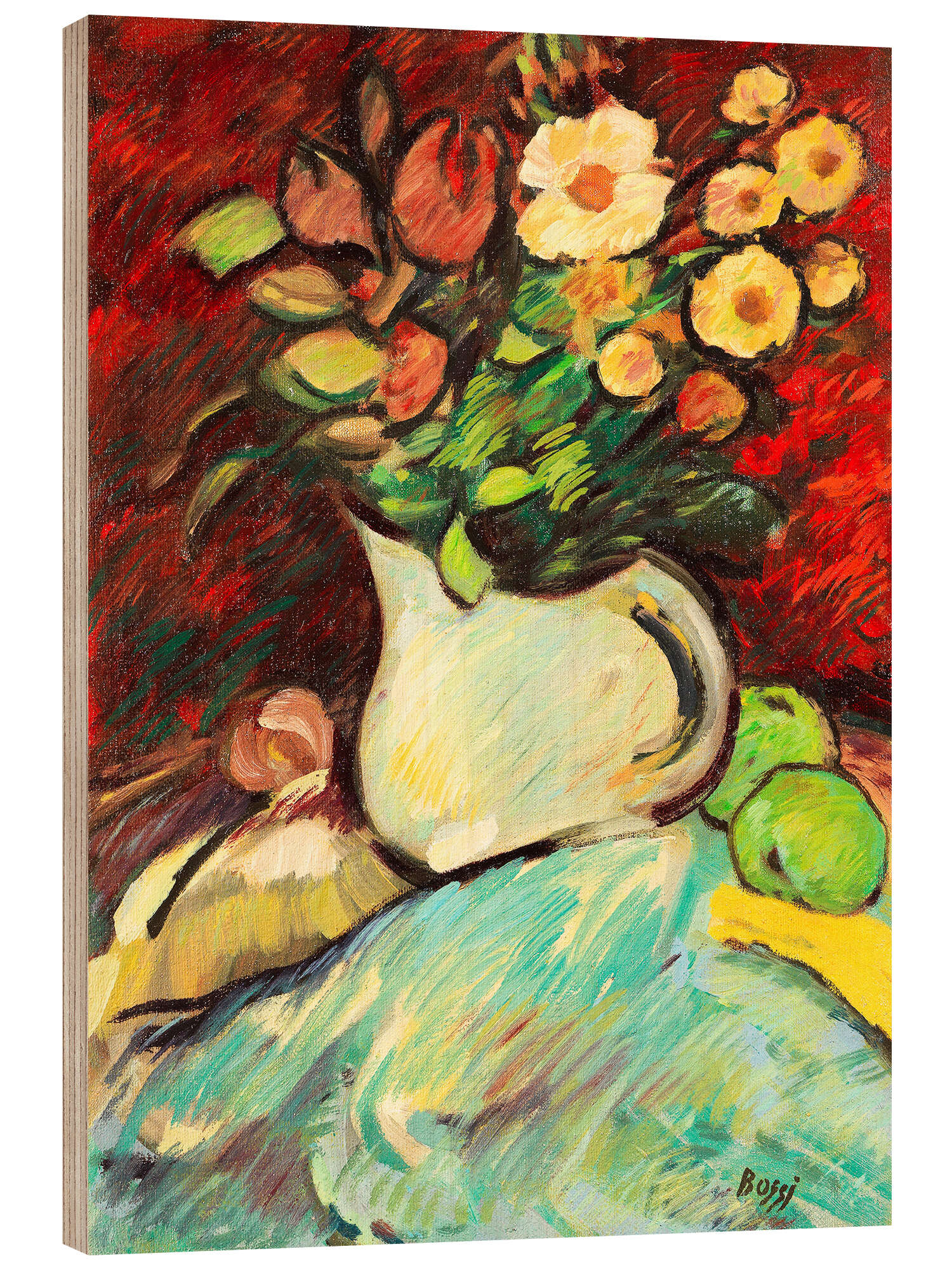 Posterlounge   Wandbilder   Malerei   Expressionismus   Erma Bossi   Holzbild Stillleben mit Blumenvase und Äpfeln