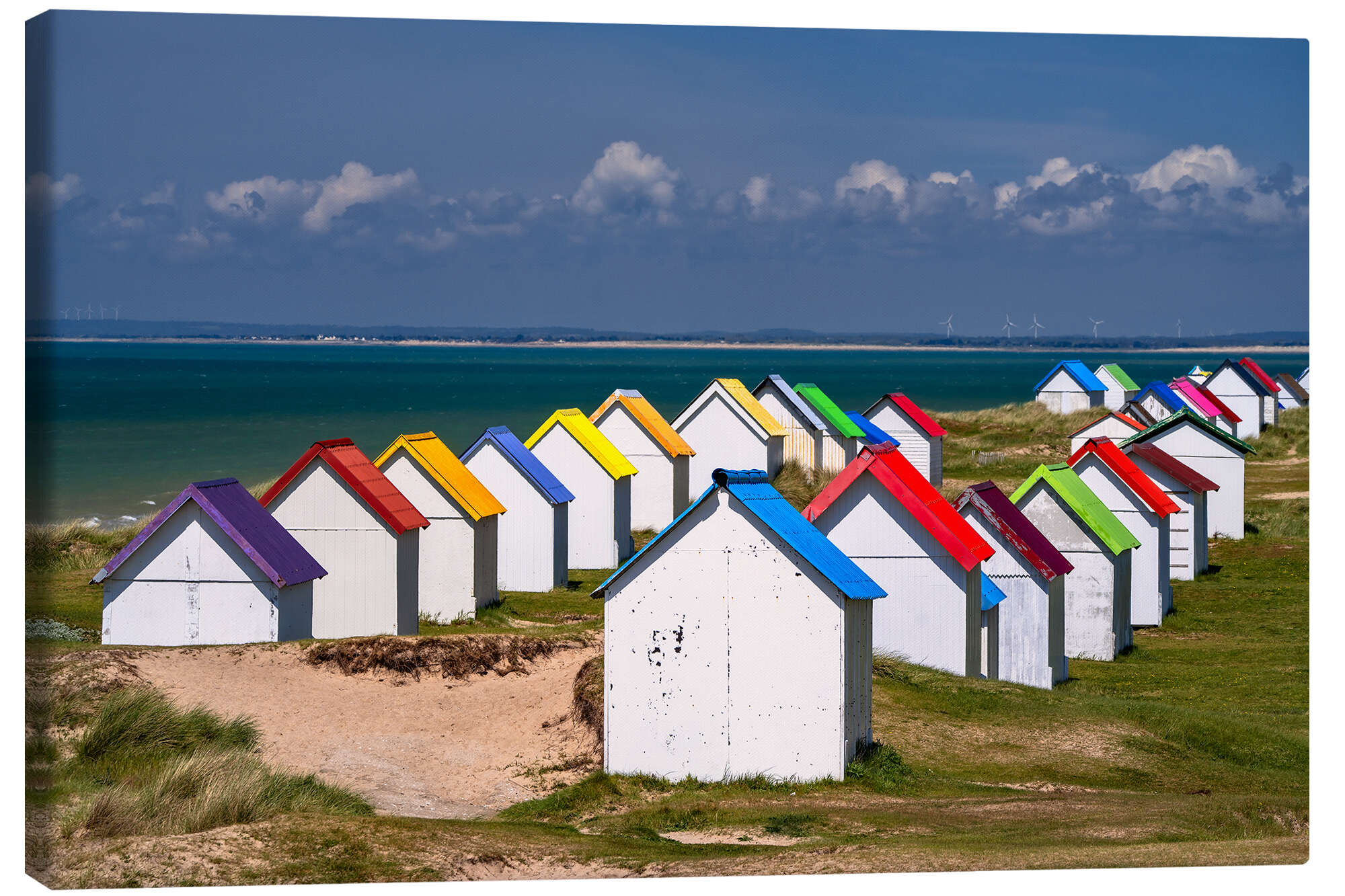 Leinwandbild Bunte Strandhäuser in der Normandie