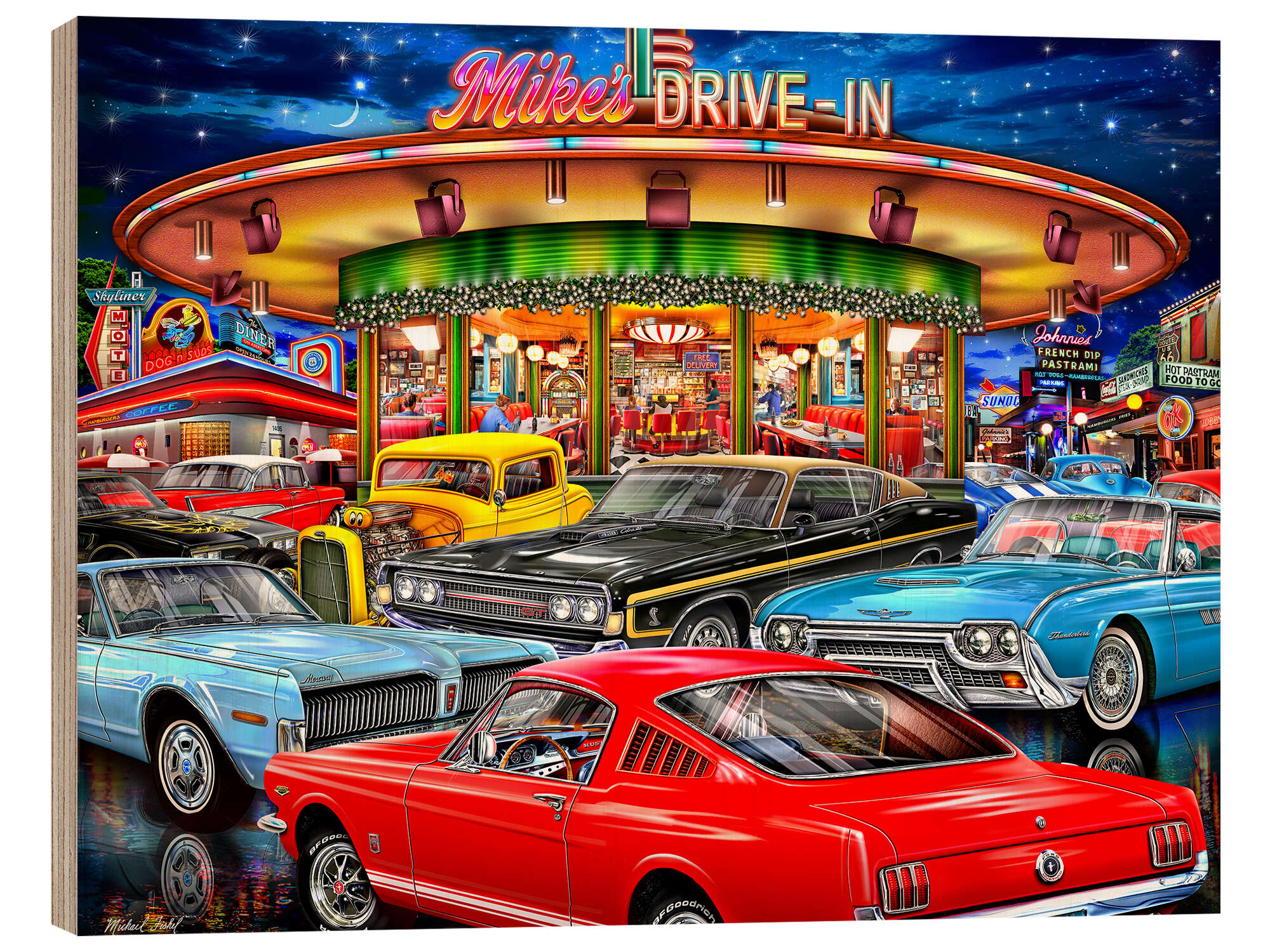 Holzbild Retro Drive In