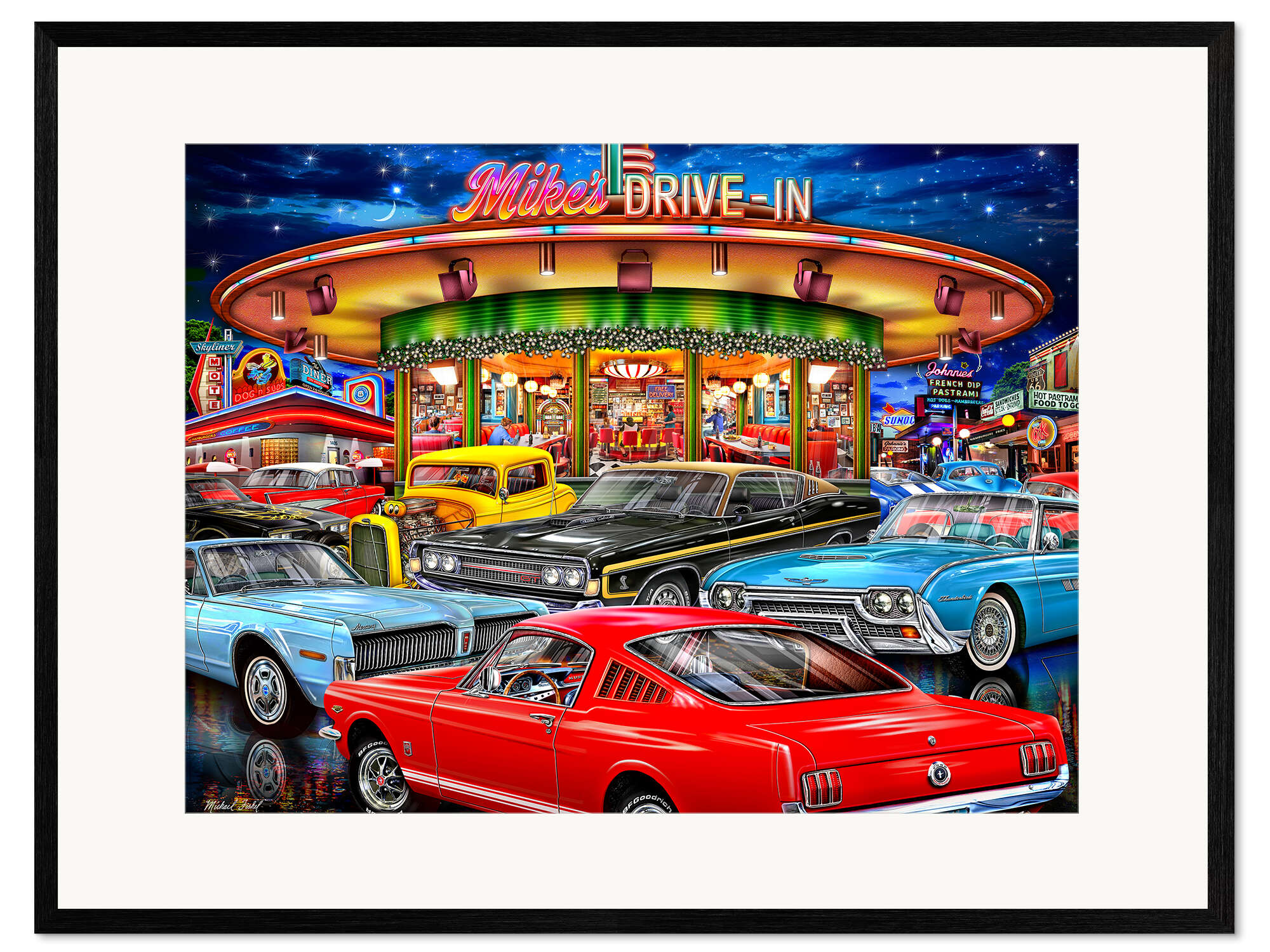 Gerahmter Kunstdruck Retro Drive In