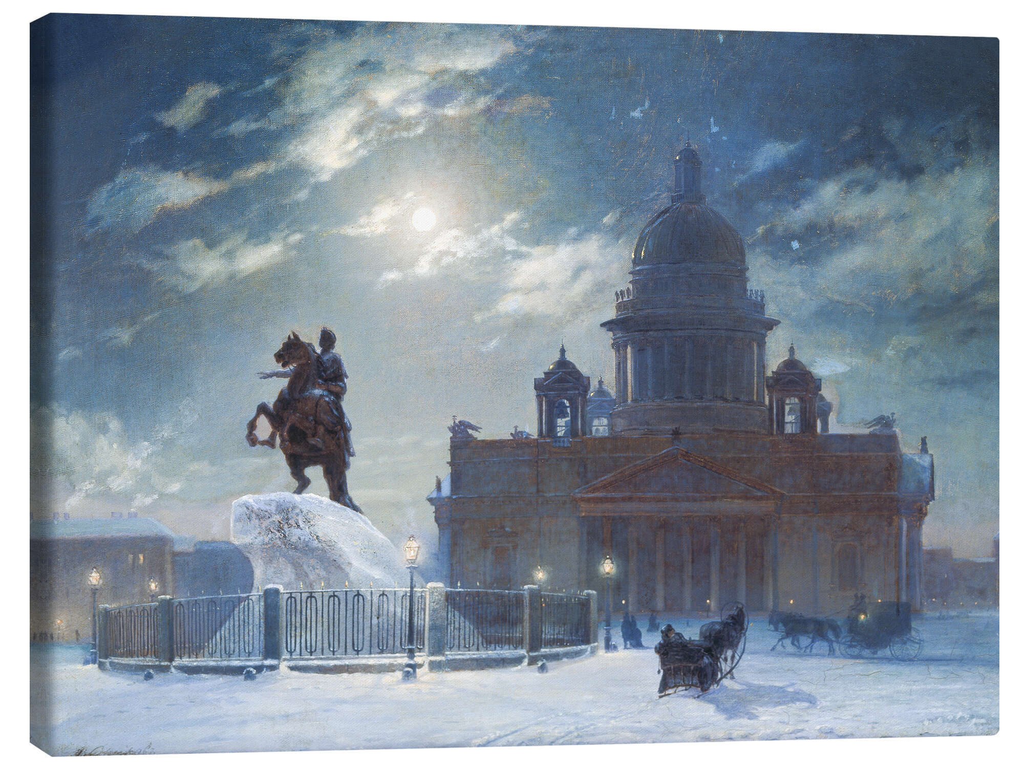 Leinwandbild St.Petersburg im Winter, das Denkmal Peters des Grossen, 1870