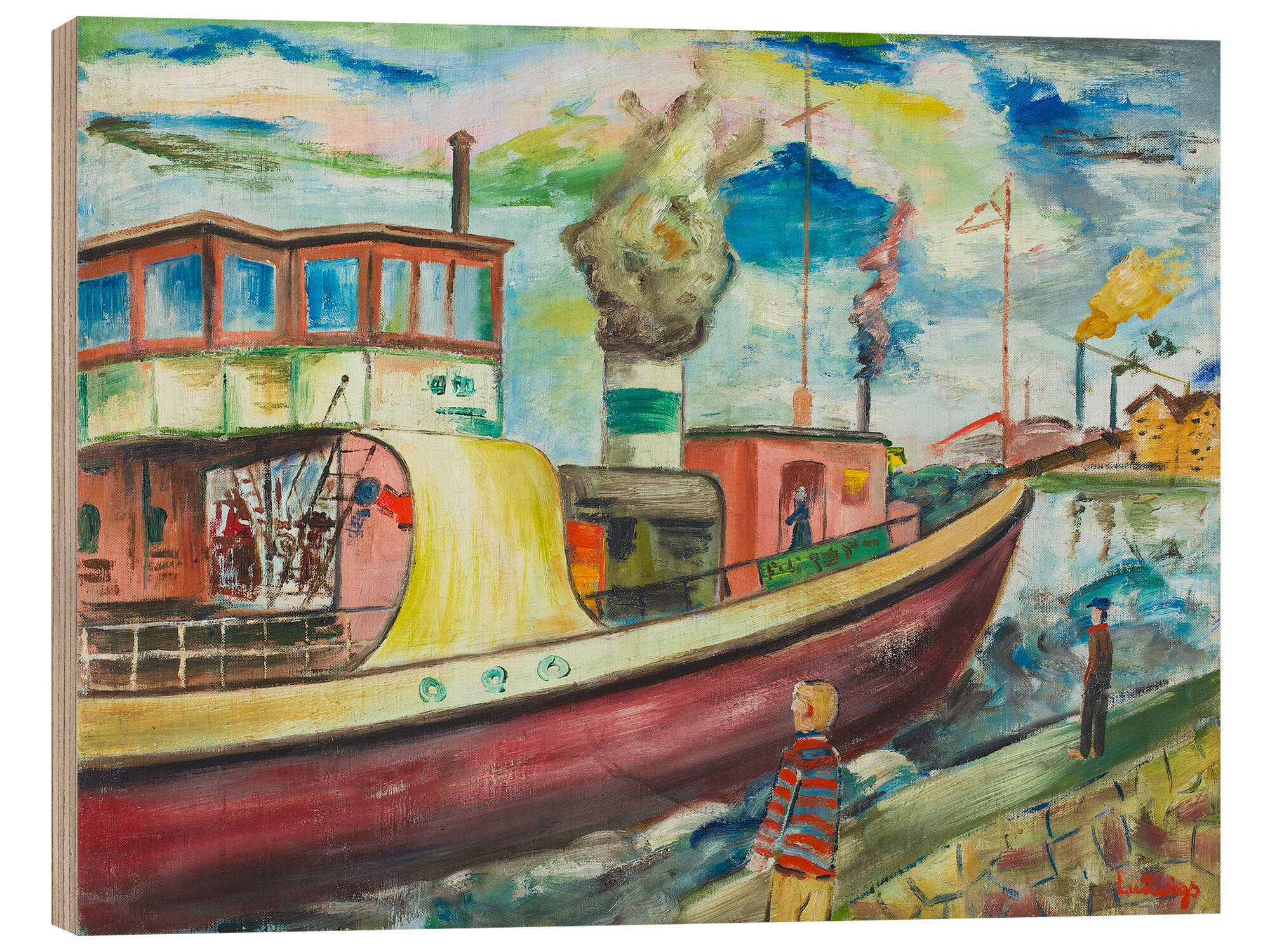 Posterlounge   Wandbilder   Malerei   Expressionismus   Holzbild Flußdampfer - Peter Ludwigs
