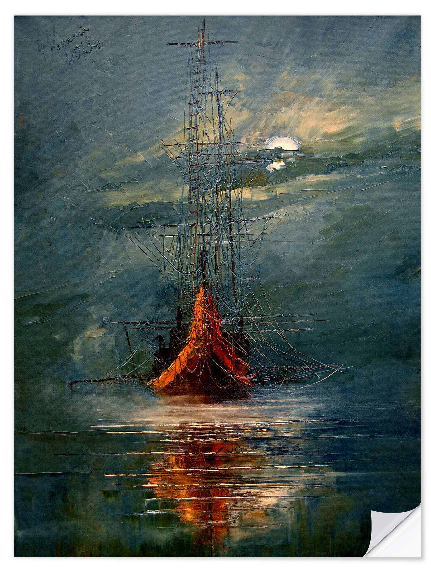 Wandsticker Mond und Meer