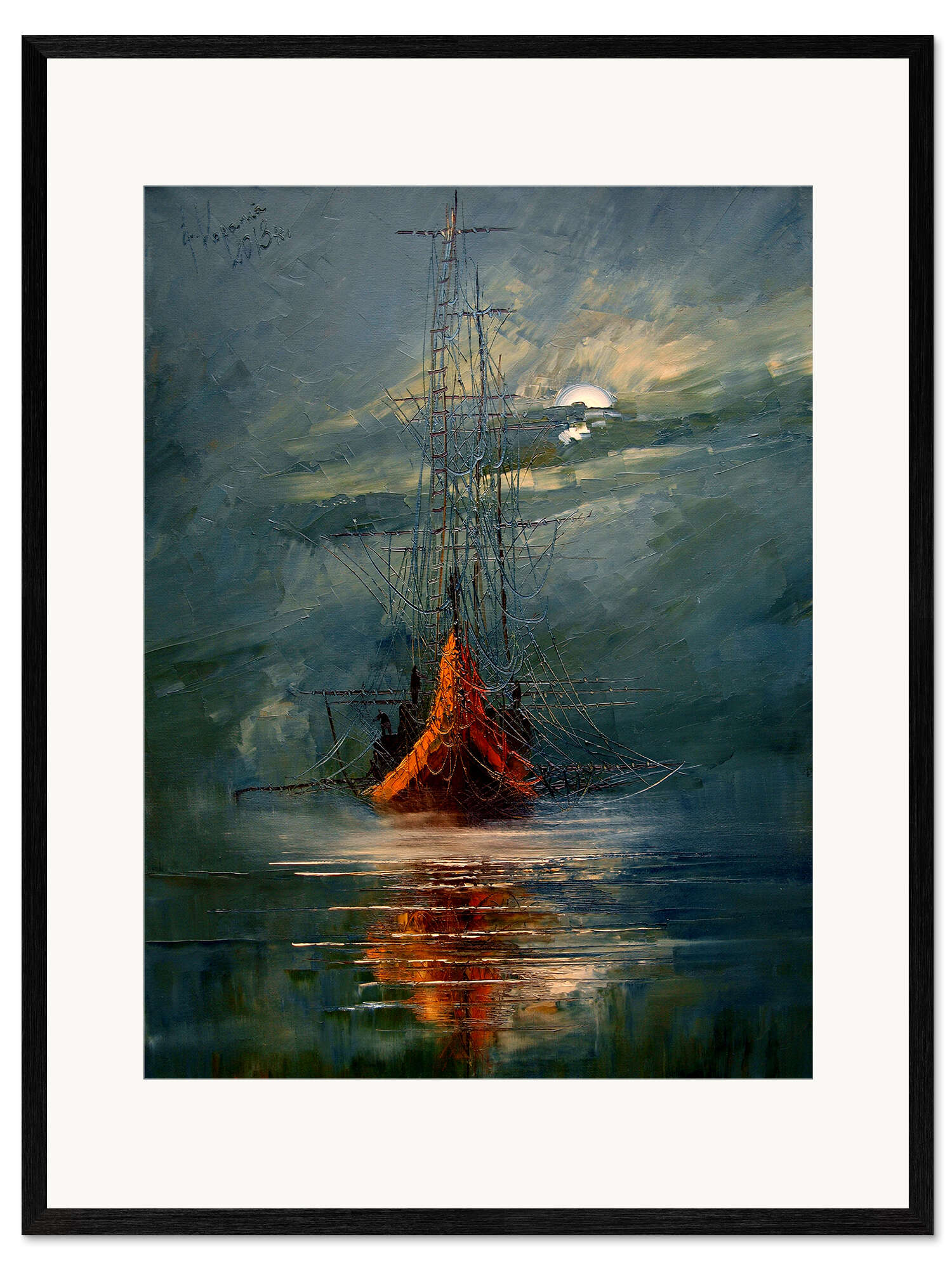 Gerahmter Kunstdruck Mond und Meer