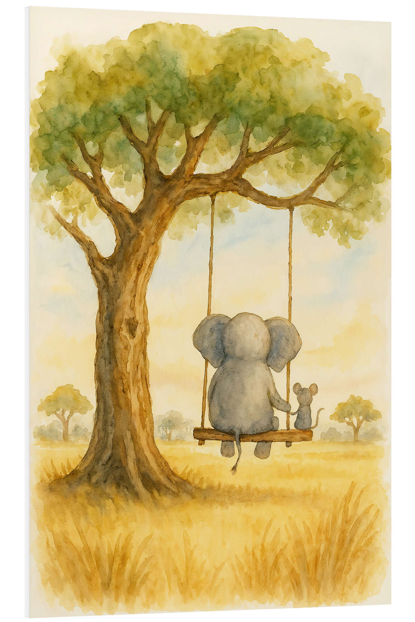 Hartschaumbild Elefant und Maus auf einer Schaukel