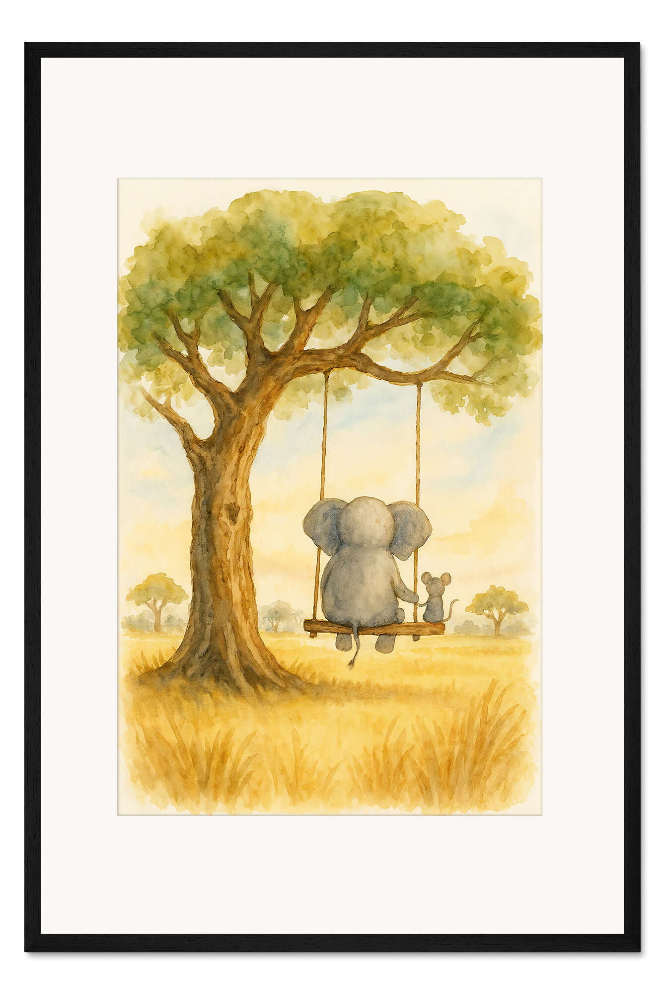 Posterlounge   Wandbilder   Kinderzimmer   Natalie Bruns   Gerahmter Kunstdruck Elefant und Maus auf einer Schaukel