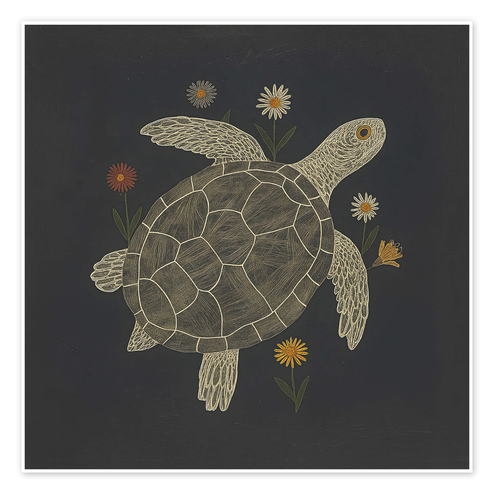 Poster Schildkröte mit Blumen