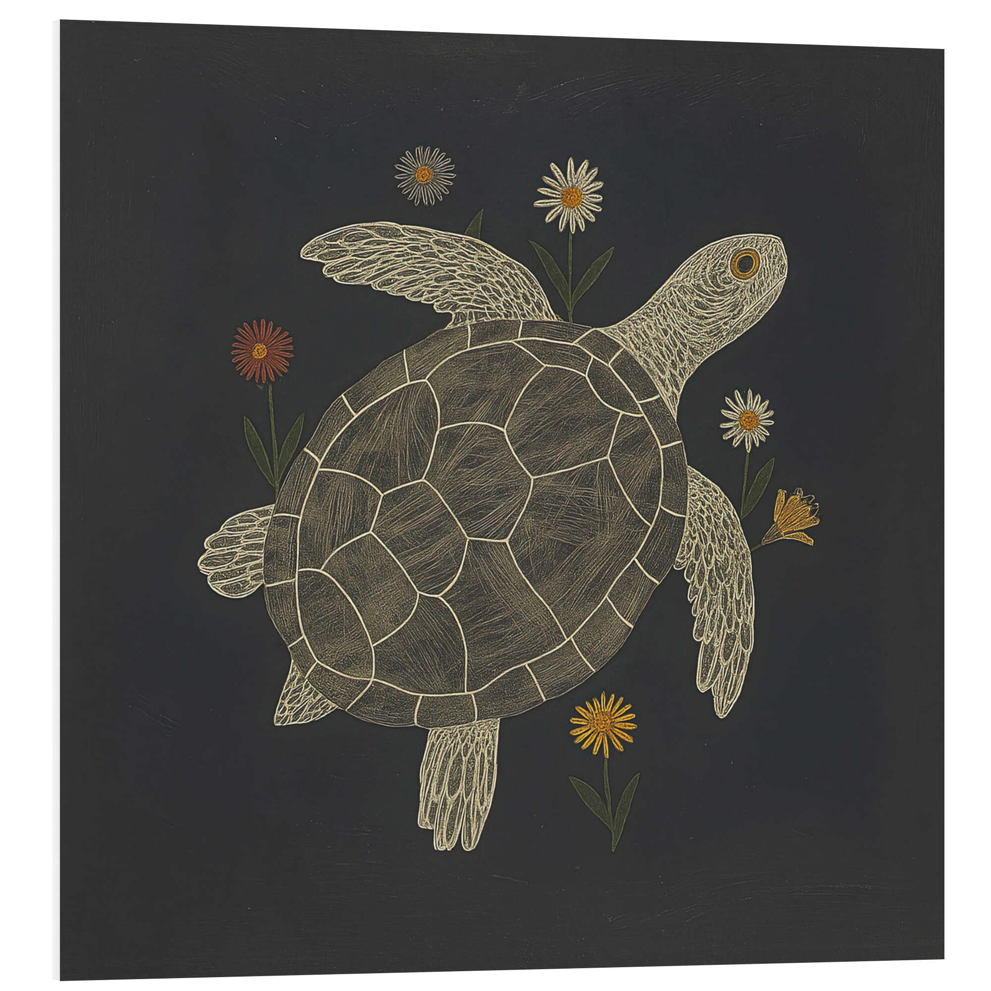 Posterlounge   Wandbilder   Kinderzimmer   ThingDesign   Hartschaumbild Schildkröte mit Blumen