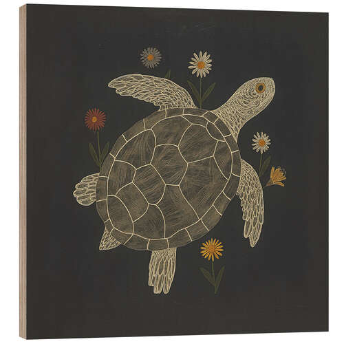 Holzbild Schildkröte mit Blumen