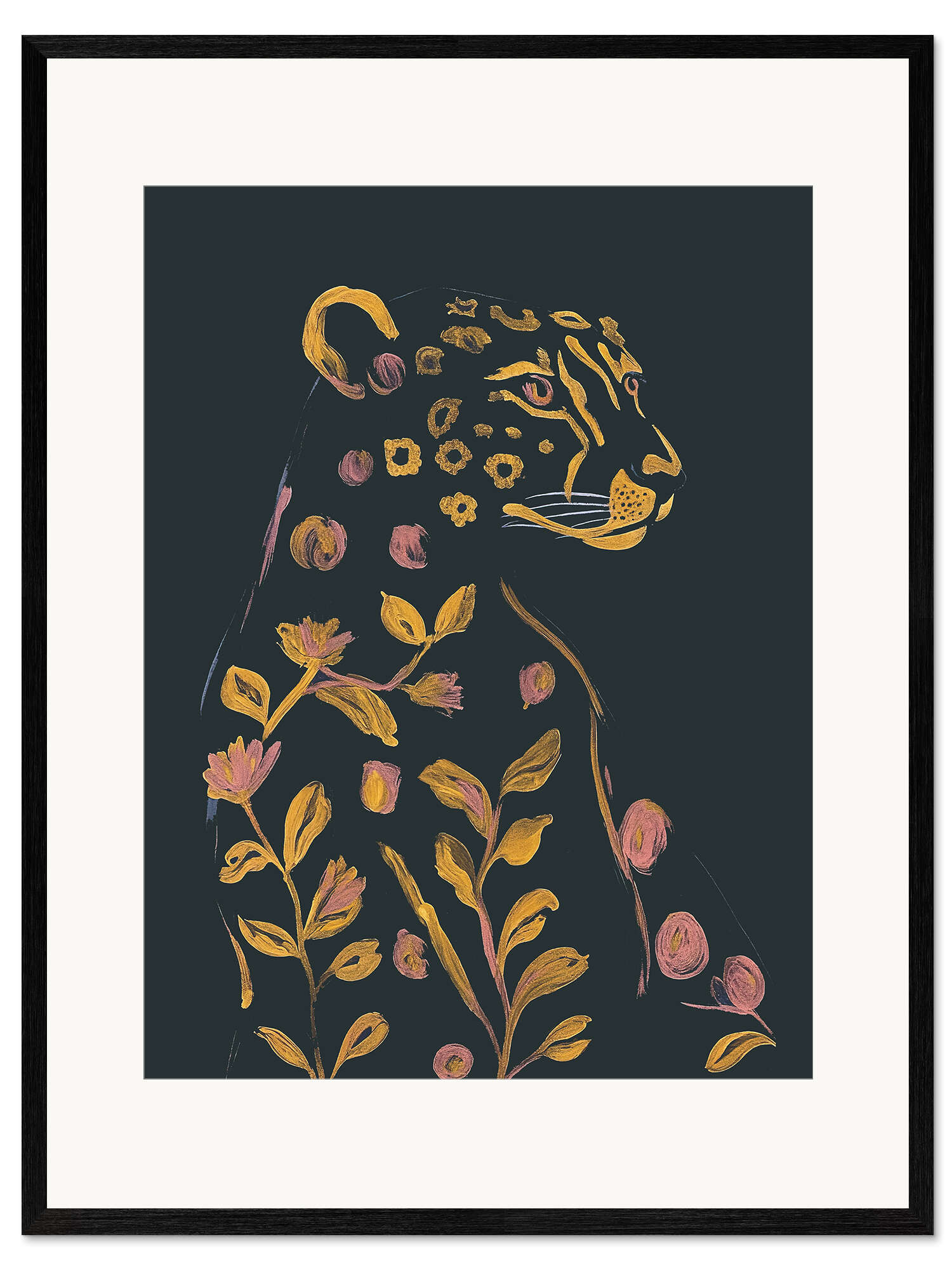 Gerahmter Kunstdruck Blumengepard