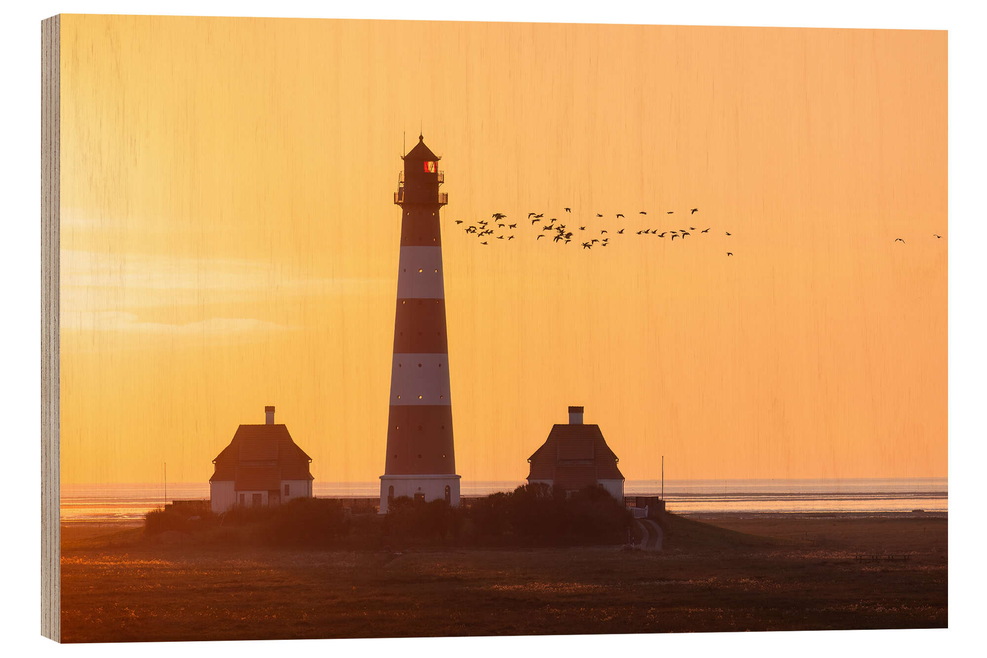 Posterlounge   Wandbilder   Fotografie   Moqui, Daniela Beyer   Holzbild Vogelzug am Leuchtturm Westerhever