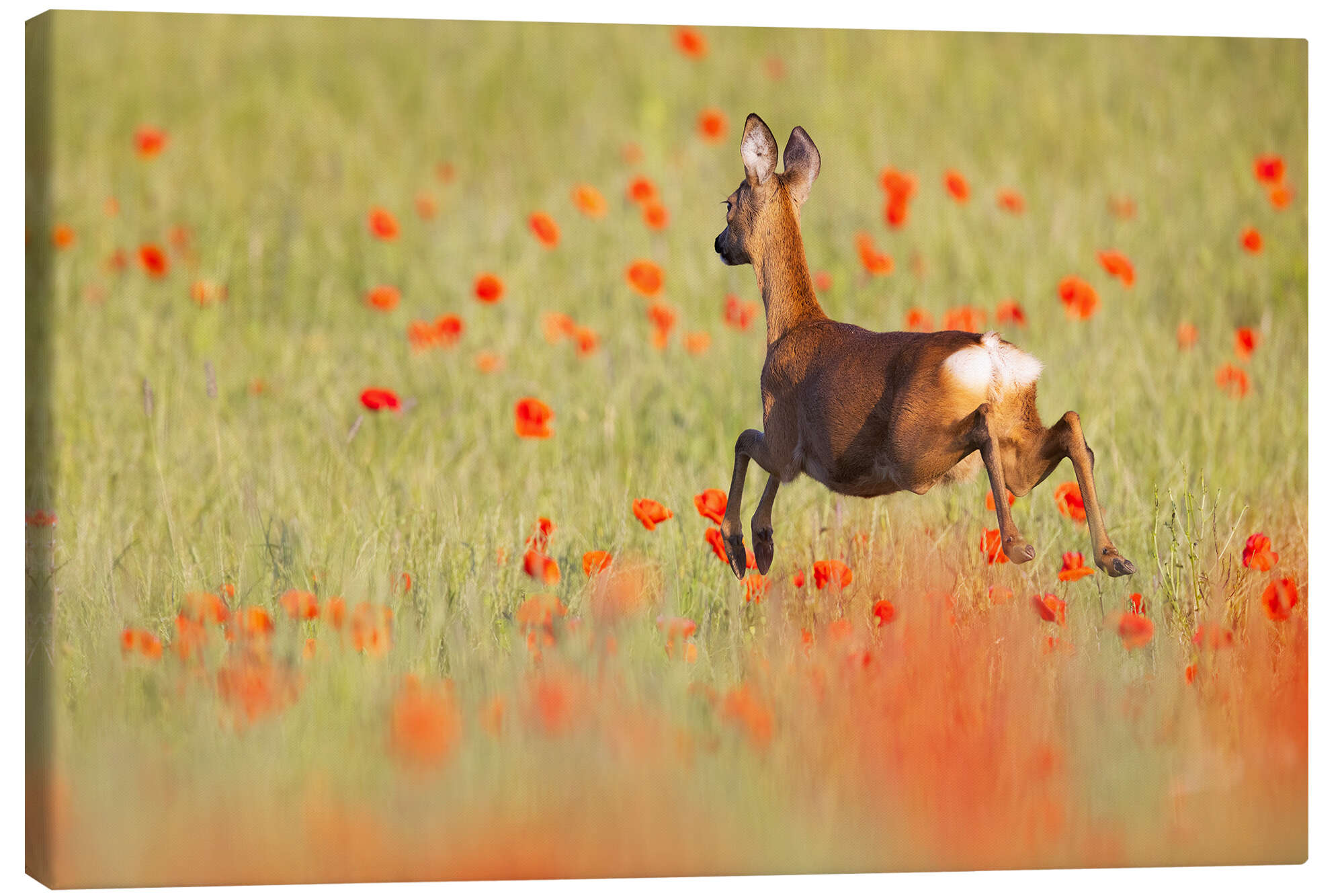 Leinwandbild Reh im Mohnfeld