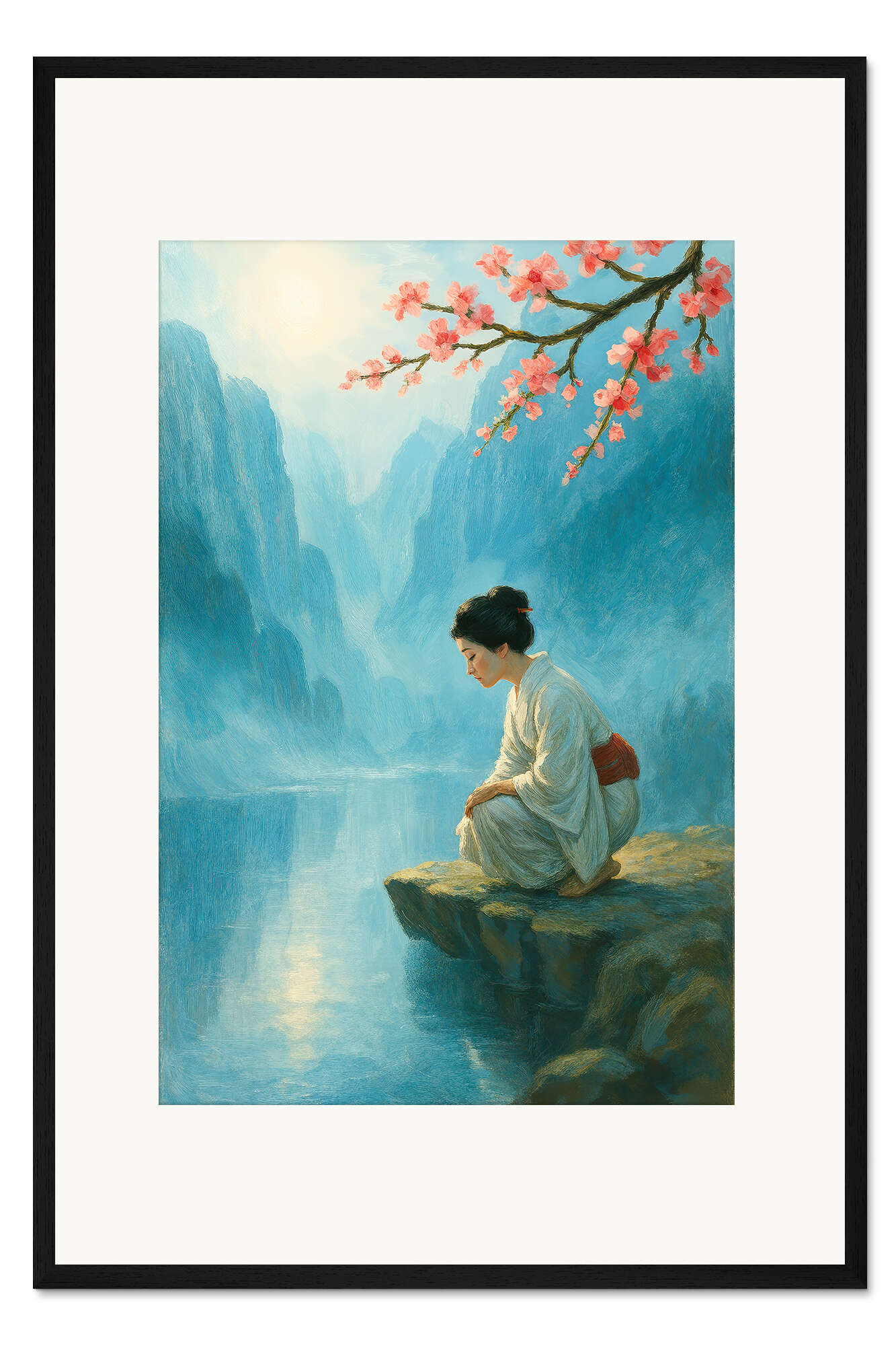 Posterlounge   Wandbilder   Menschen   Frauen   Natalie Bruns   Gerahmter Kunstdruck Frau im Kimono am Bergsee