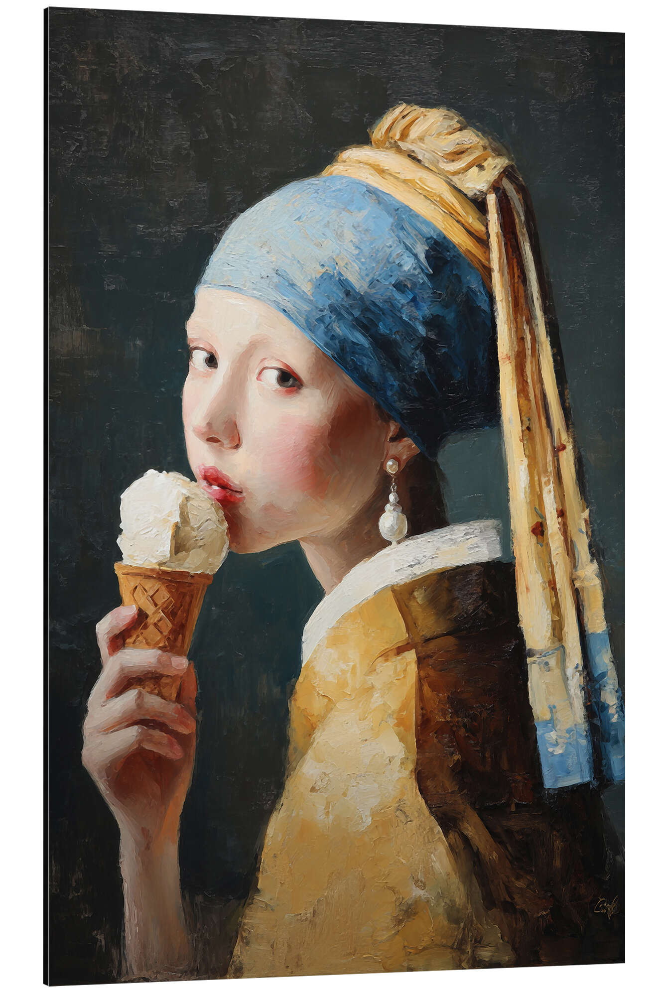 Alubild Mädchen mit Perlenohrring und Eis
