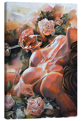 Leinwandbild Champagner und Rosen