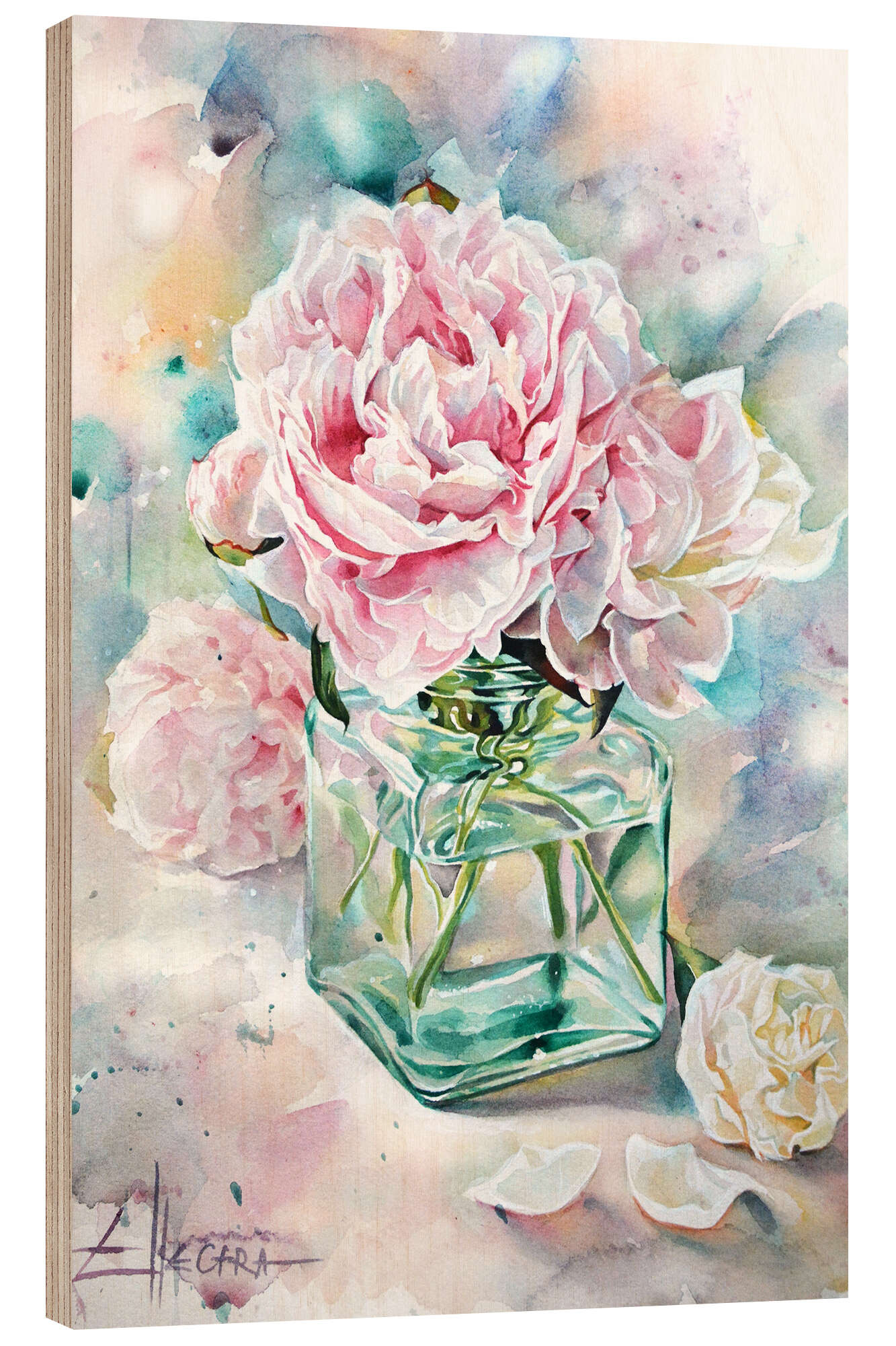 Holzbild Rosa Pfingstrosen