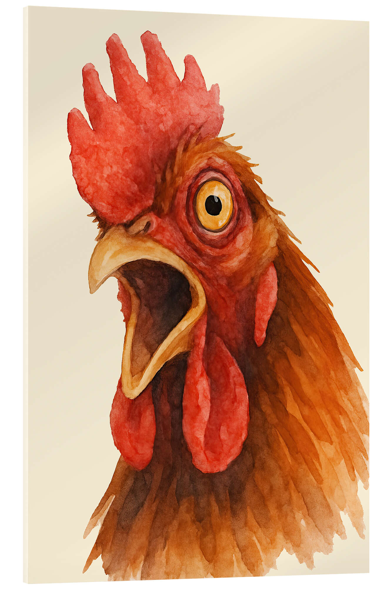 Acrylglasbild Porträt eines schreienden Hahns