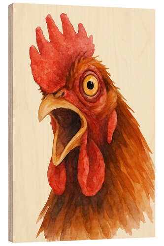 Holzbild Porträt eines schreienden Hahns