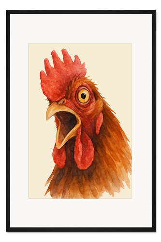 Posterlounge   Wandbilder   Kinderzimmer   Natalie Bruns   Gerahmter Kunstdruck Porträt eines schreienden Hahns